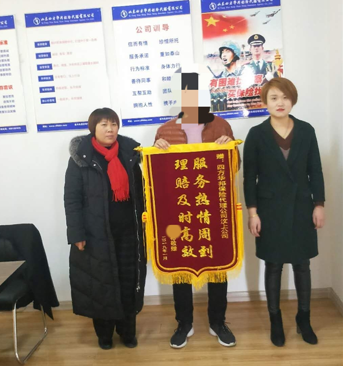 通過本次理賠,原來還持懷疑態(tài)度的張先生真正相信了保險,今天張先生特此為我司送來錦旗以示感謝!近日,張先生又在我司為其家人購買了多份保險產(chǎn)品。
