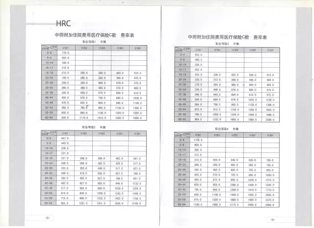 HRC費(fèi)率如下(職業(yè)不同,保費(fèi)不同):