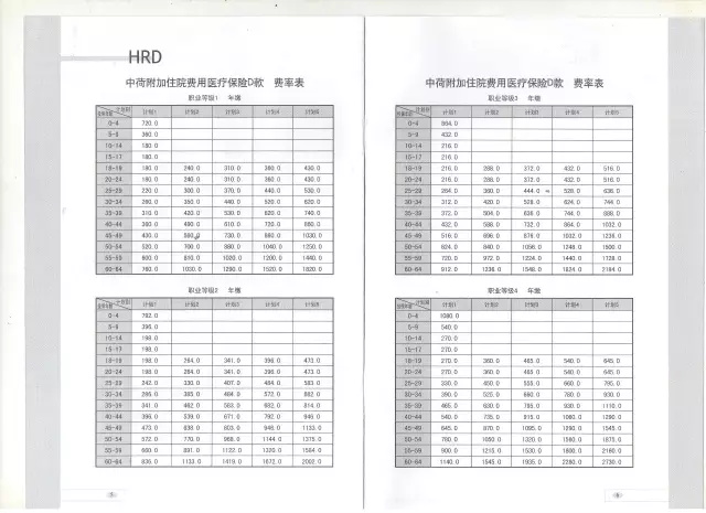 HRD費(fèi)率如下(職業(yè)不同,保費(fèi)不同):