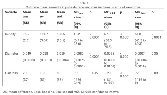 在30名22-65歲的III–VI級男性脫發(fā)患者頭皮的3個(gè)區(qū)域應(yīng)用干細(xì)胞外泌體進(jìn)行臨床研究。結(jié)果發(fā)現(xiàn):平均頭發(fā)密度明顯增加,參與研究前的149.7根 /cm2 在參與臨床研究后第4周增加到153.6根 /cm2,并在第12周進(jìn)一步增加到157根 /cm2,且受試者對效果的滿意度在12周時(shí)較4周時(shí)明顯提高。